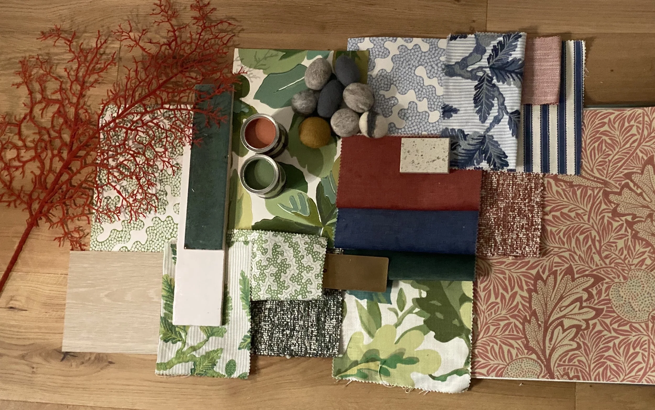 The design lifts a palette of colours which are both reflective of its coastal location but also hint at the leafy New Forest landscape. Deep rich tones of green, warm terracotta and crisper blues are combined with leafy prints and organic patterns on both cushions and wallpapers. The aim was to create a homely eclectic interior to socialise and relax in.