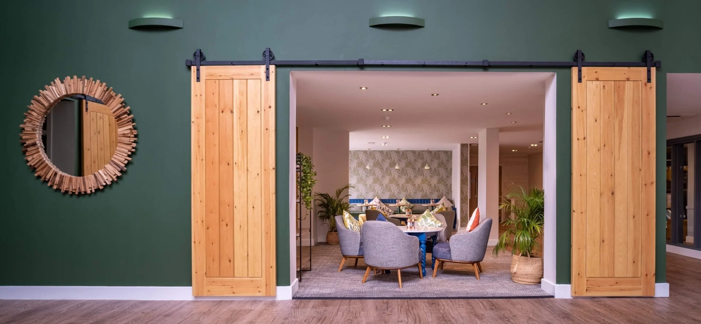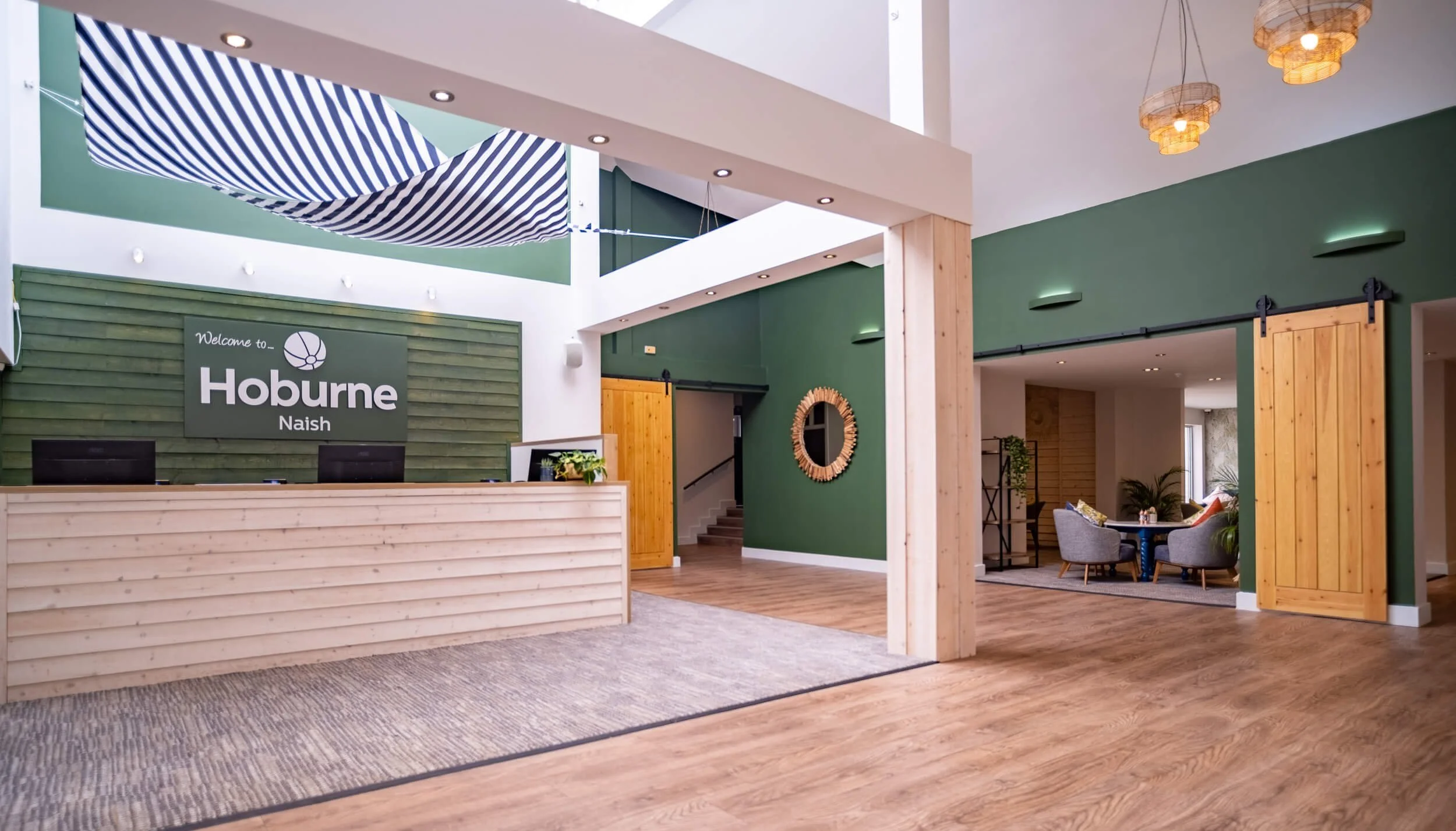 This holiday destination in Dorset combines its dramatic coastal clifftop views with the New Forest. A new design for the reception through to relaxing, cosy sitting rooms with a new bar and restaurant plus an indoor play area provides a series of spaces which work during the day time through to the evening.